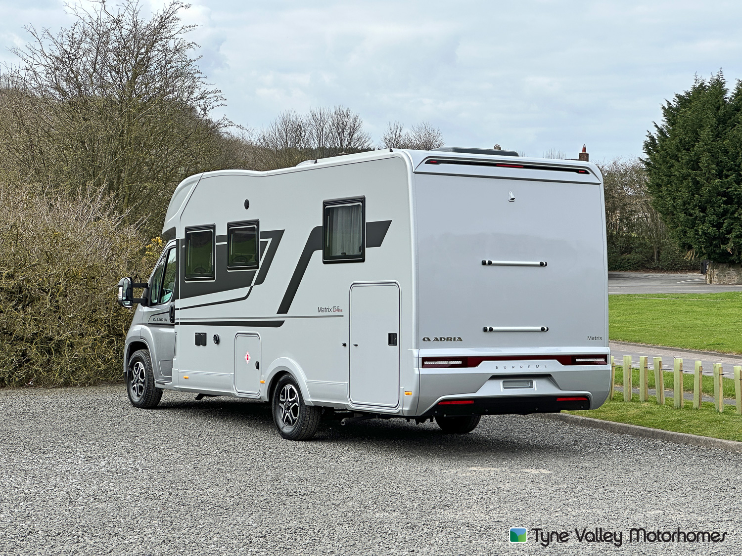 Outside, this motorhome truly shines with a large garage, an awning for those sunny days, a solar panel to keep you powered up, and a reversing camera for ease of maneuvering. Whether you’re setting off on a weekend escape or an epic road trip, the Adria Matrix Supreme 670 SC from Tyne Valley Motorhomes is ready to make every journey unforgettable.