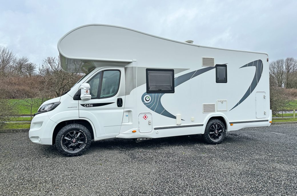This 2021 model Chausson C656 is based on a Fiat Ducato chassis with a 2.3 L 140 BHP engine paired to a 6-speed manual