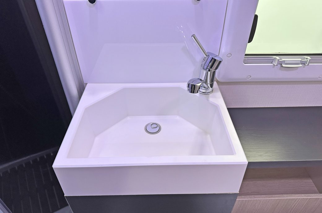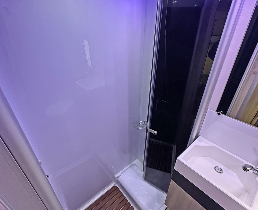 includes a cooker, large fridge freezer, and sink. while the washroom features a separate shower for convenience. Ideal for
