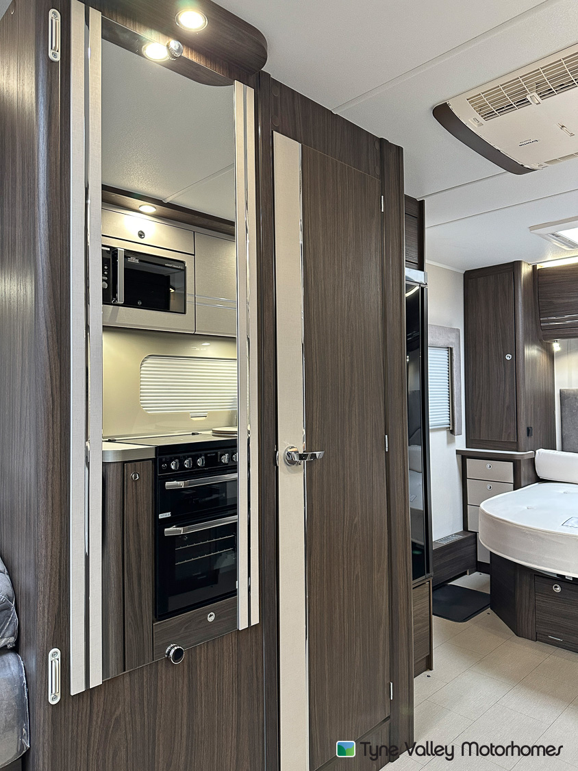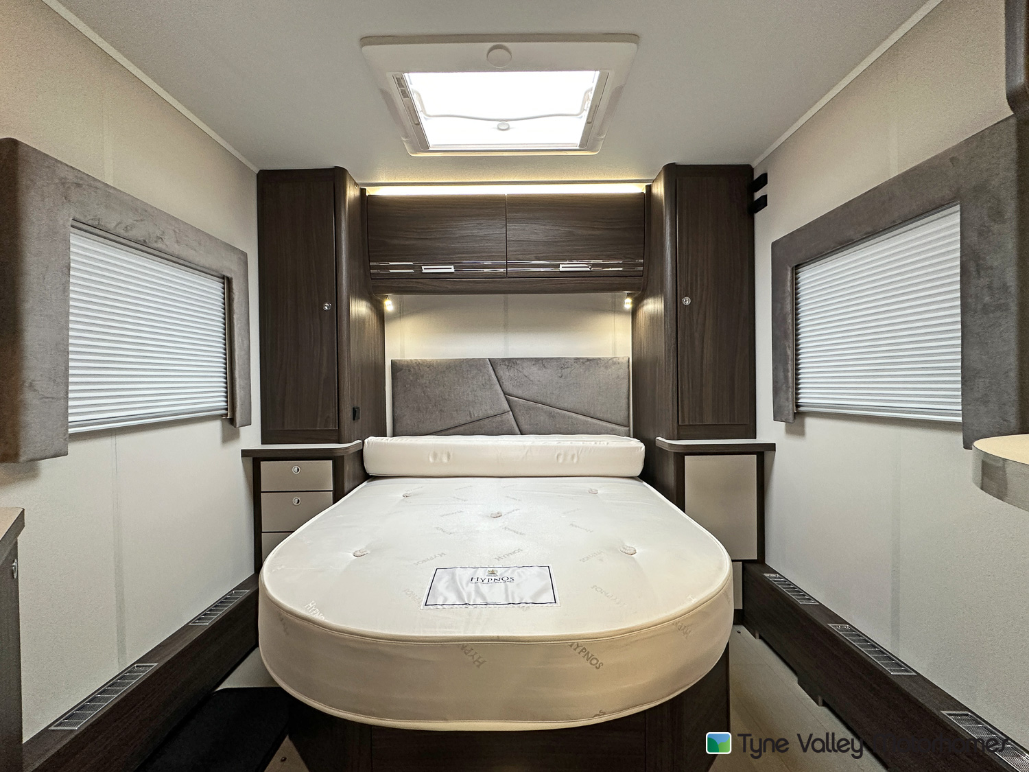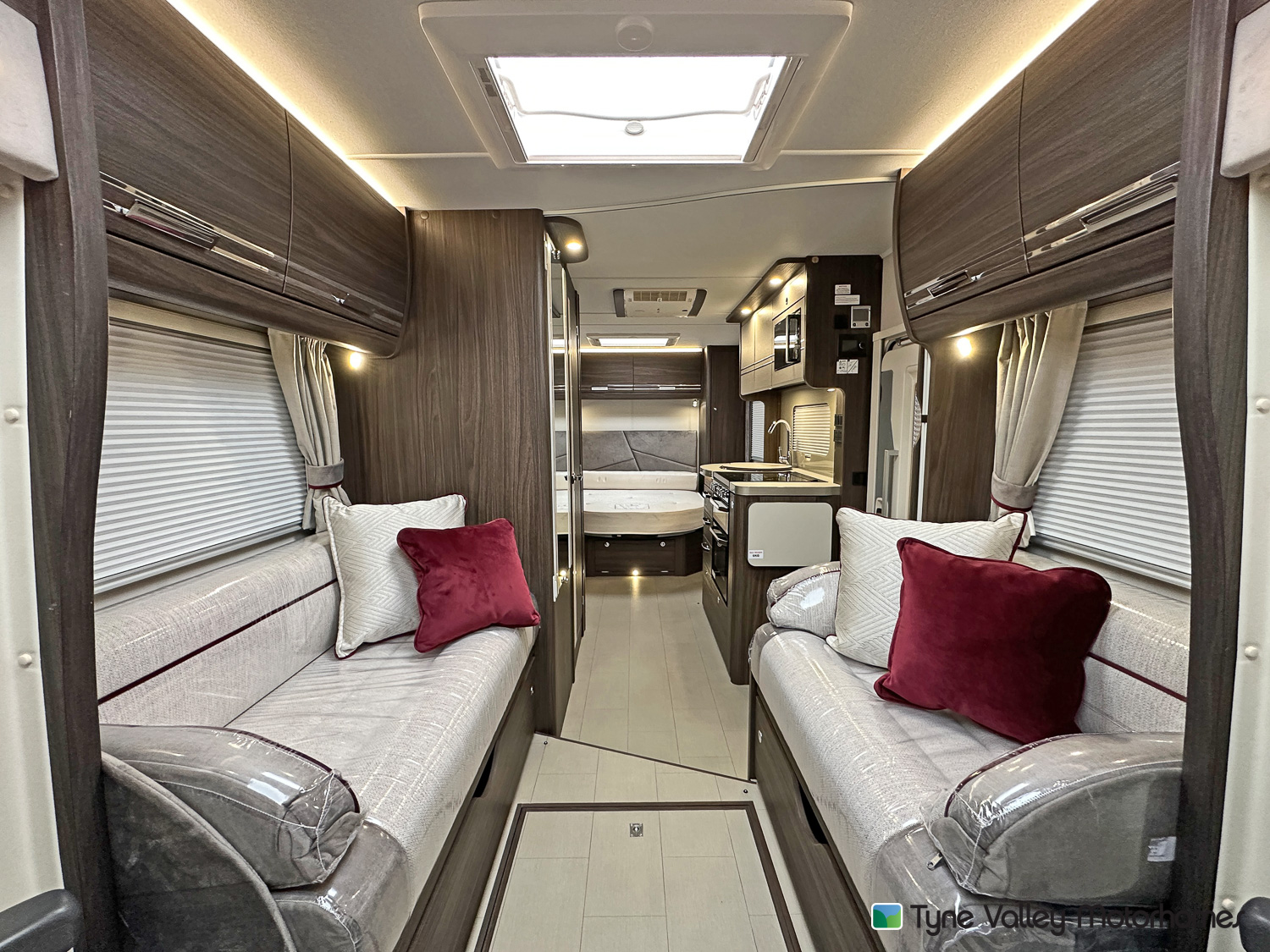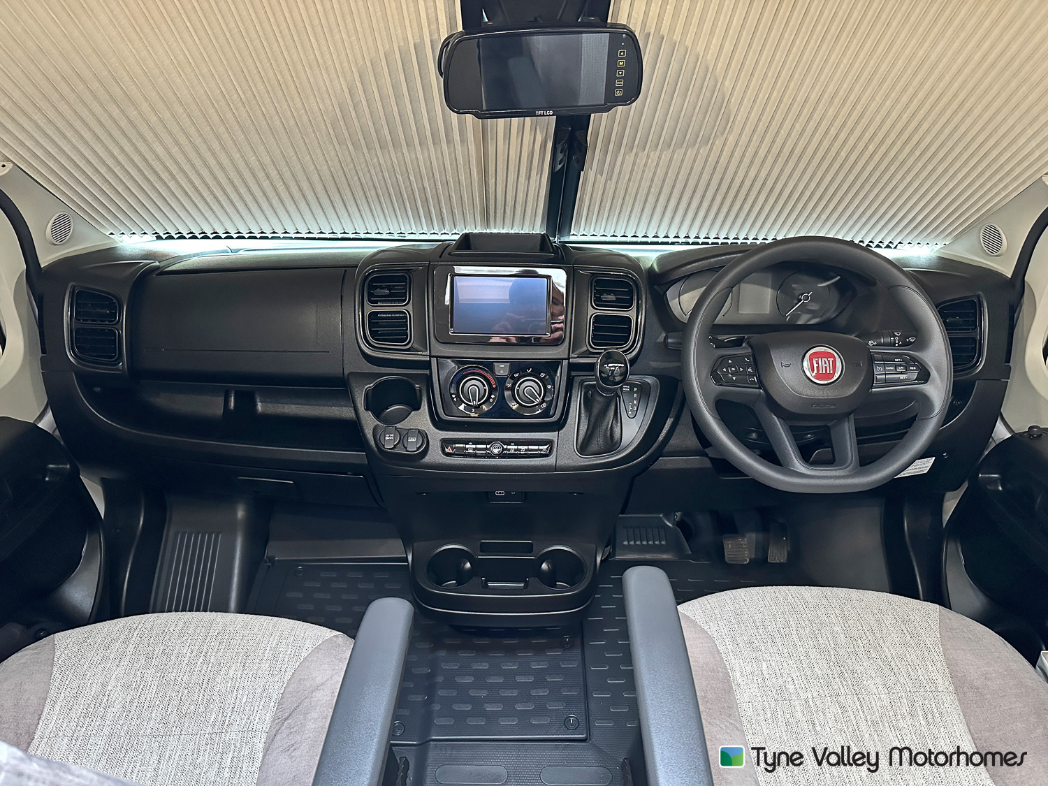 This 2024 model Elddis Encore is based on a Fiat Ducato chassis with a 2.2 L 140 BHP engine paired to an automatic gearbox. This motorhome perfectly combines stylish design, innovative features and practical living space.
