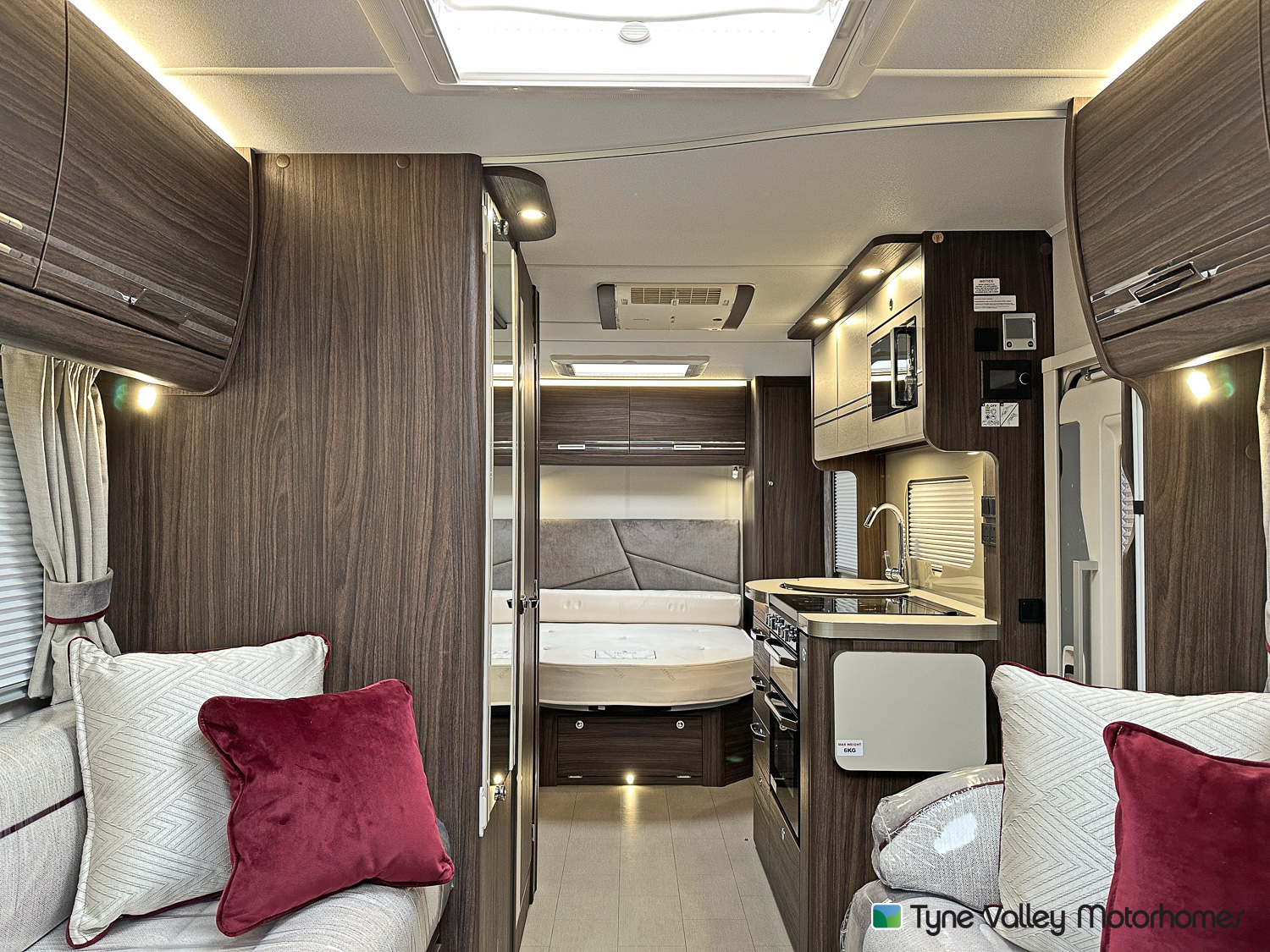 The Elddis Encore 250 also comes with an impressive list of features designed to make every journey enjoyable. The interior is finished with bespoke stain-resistant upholstery for style and practicality, and the award winning Alde heating system ensures the motorhome remains warm and inviting in all seasons. Extras fitted on this motorhome include Truma habitation air conditioning, awning, reversing camera, winter pack and alloy wheels.