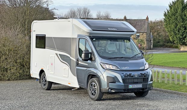 New for 2026 this Elddis Signature 120 is based on a Fiat Ducato chassis with a 2.2 L 140 BHP engine paired to an automatic gearbox. The rear lounge/dinette has two side facing settee seats and makes good use of the folding store away table, the two seats can be used as two single beds or easily convert into a good size double bed. The side kitchen has a 4 burner hob (3 gas,1 electric) hob, combination oven and grill, sink unit, microwave oven and a fridge/freezer. Opposite the kitchen is a spacious washroom with shower, washbasin and a cassette toilet. This vehicle also comes with cab air con, driver and passenger airbags, cruise control with speed limiter, DAB radio/multi-media system with Bluetooth, steering wheel controls for radio and phone, TV preparation with directional aerial, alloy wheels, plus Whale heating – runs on gas and/or electric with quiet night-time setting and ducted heating throughout including the washroom. A compact motorhome equipped with everything you need for a touring holiday.