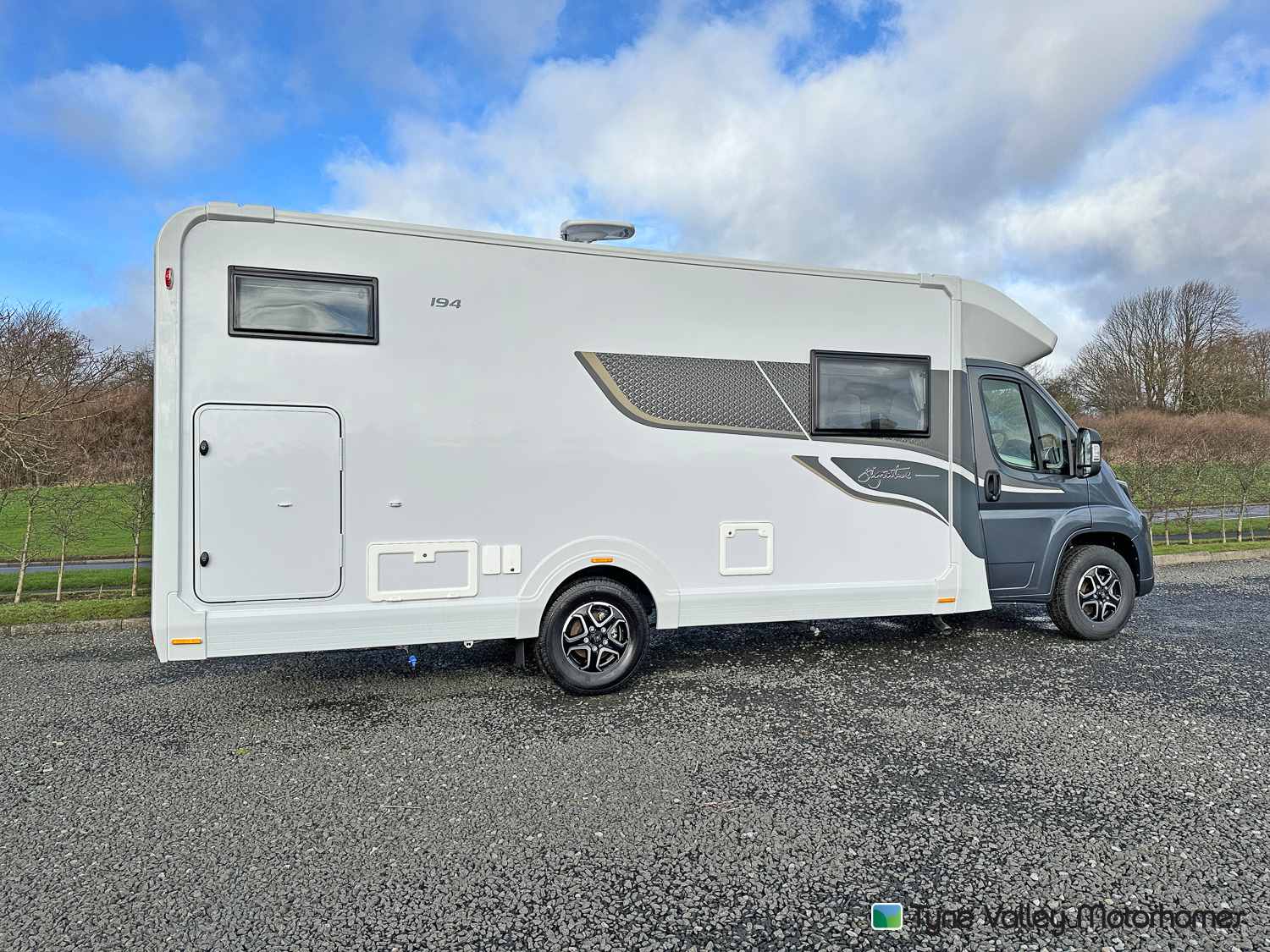 The Elddis Signature 194 also comes with an impressive list of standard features designed to make every journey more enjoyable. Cab air conditioning keeps the driving environment cool, while driver and passenger airbags provide added safety. The reversing camera takes the stress out of parking and manoeuvring, and cruise control makes longer journeys more relaxing. Entertainment and connectivity are covered with a DAB radio, Bluetooth and a multi-function steering wheel. The interior is finished with bespoke stain-resistant upholstery for style and practicality, and the Whale heating system ensures the motorhome remains warm and inviting in all seasons.