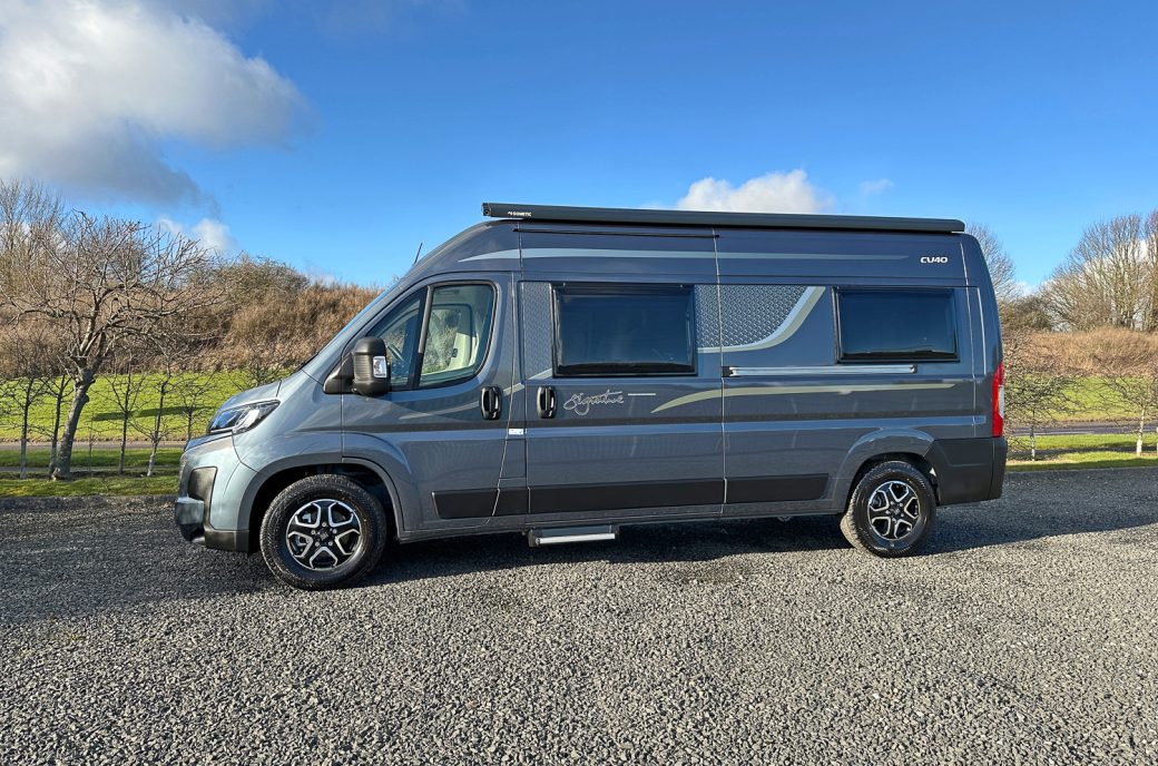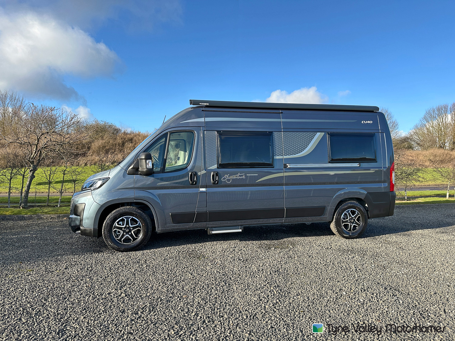 The 2026 Elddis Signature CV40 is exclusive to Tyne Valley Motorhomes and based on a Fiat Ducato chassis with a 2.2 L 140 BHP engine paired to a 9-speed automatic gearbox.