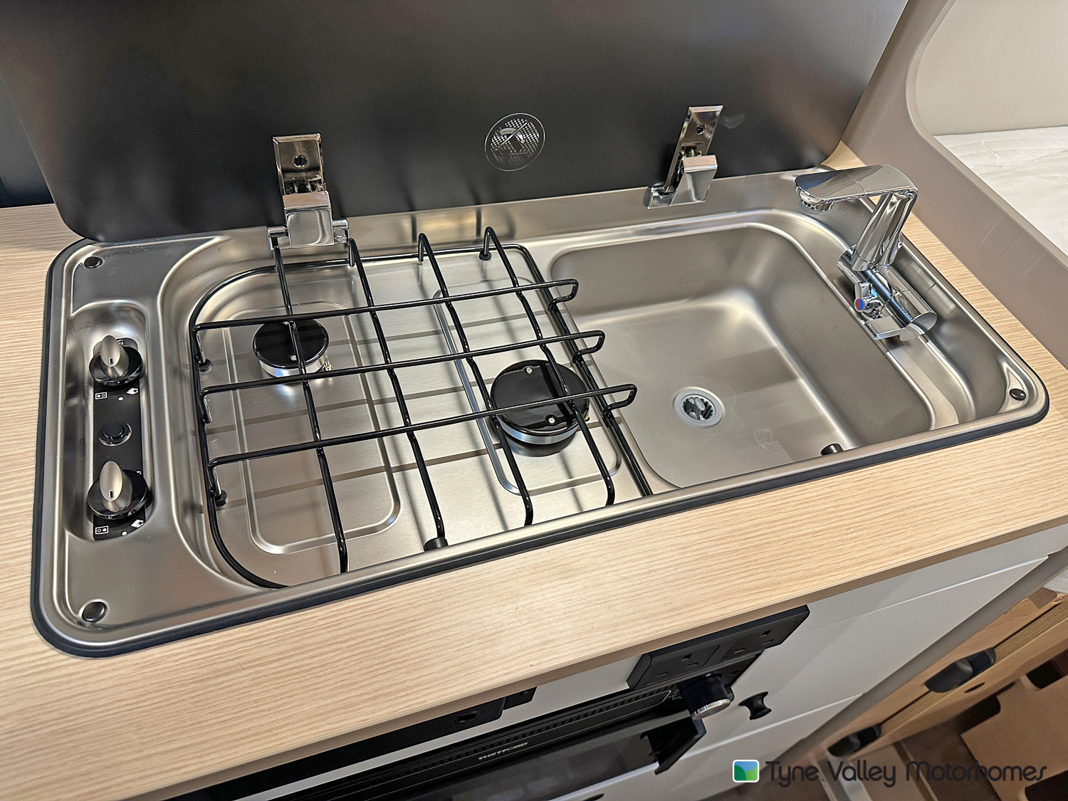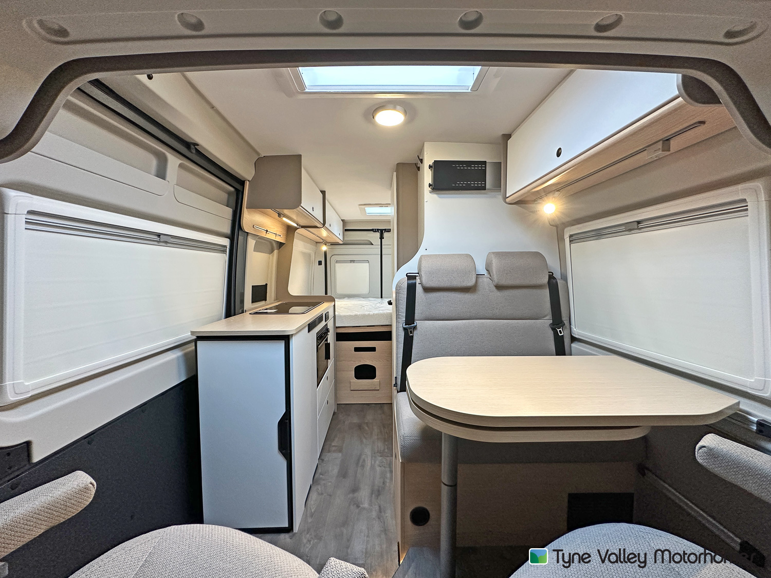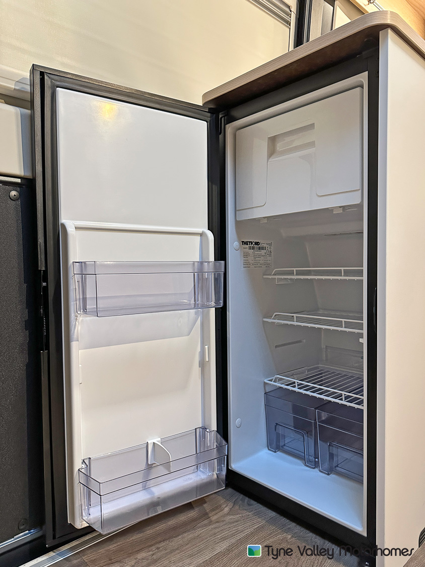 Inside, the rear of the van features a transverse double bed, offering a great night’s sleep wherever you are. There’s plentiful storage beneath the bed, and can be lifted to accommodate larger or bulkier items when you need the extra space. This clever design balances comfort with practicality, making it ideal for both weekends away and extended touring.