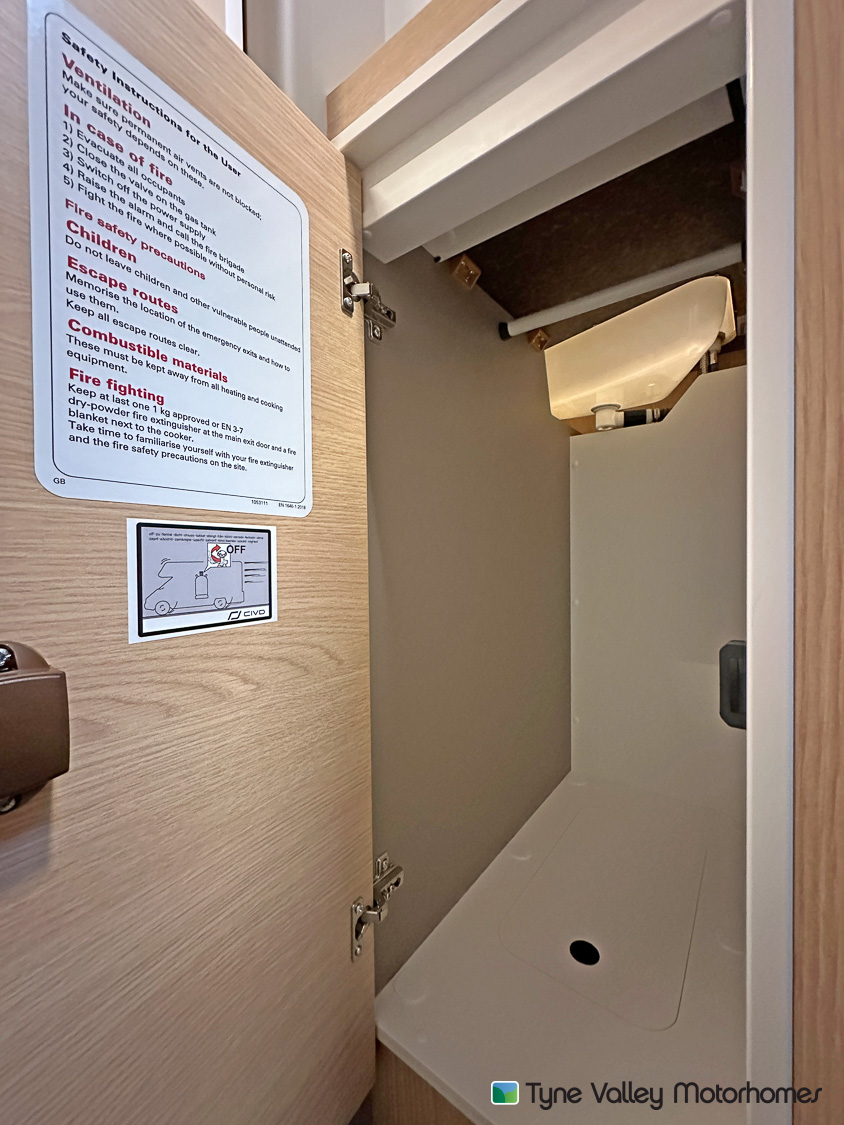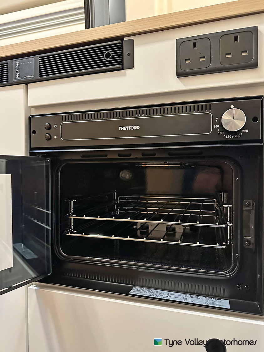 Throughout the Whirlwind GTV 560, thoughtful touches enhance your comfort. The reliable Truma heating system keeps things warm year-round, while ample LED lighting and USB charging points make daily living easy. Generous overhead cabinets, well-placed cupboards and useful underfloor storage ensure that everything has its place, helping keep the interior tidy and organised.